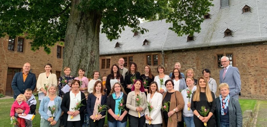 رحب مستشار المقاطعة الأول ورئيس قسم الشباب كارل فريدريش فريسه بـ 20 مربية أطفال جديدة في صفوف مربيات الأطفال في مقاطعة فالديك-فرانكنبرج. وقد حصلن على شهادات لإتمامهن بنجاح تأهيلهن الأساسي كمربيات أطفال. نظرًا لعدم إمكانية إقامة حفل العام الماضي بسبب قيود الاتصال التي فرضتها جائحة فيروس كورونا، أقيم حفل هذا العام في نفس توقيت الحفل السابق. وقد وفرت الساحة الداخلية لدير القديس جورجينبيرج السابق في فرانكنبرج، الذي أصبح الآن موقع مكتب إدارة المنطقة، أجواء احتفالية مثالية.