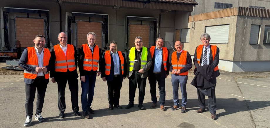 Başlık: Birlikte olası finansman projelerine bakarken: Bölgenin iş geliştirme sorumlusu Dimitrij Schmalz, WIBank'tan Marcus Runge, Bölge Yöneticisi Jürgen van der Horst, Twistetal Belediye Başkanı Friedrich Vogel, Bölge Başkanı Mark Weinmeister, Bad Arolsen Belediye Başkanı Marko Lambion ve WIBank'tan Gottfried Milde ve Matthias Wulff. (Fotoğraf: Waldeck-Frankenberg Bölgesi)