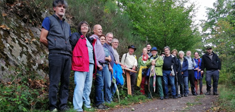 Підпис: Учасники походу по маршруту Блосенберга перед новим інформаційним щитом дізналися не лише про валунні відвали на озері Едерзее як геотоп 2025 року, але й про багато інших цікавих фактів про геологію та охорону природи і ландшафту в Національному парку Келлервальд-Едерзее. (Фото: Приватне)